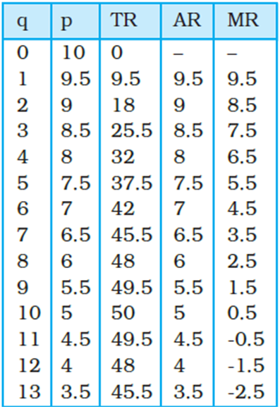•It can be noticed that as the quantity increases, TR increases to Rs 50 when output becomes 10 units, and after this level of output, total revenue starts declining.