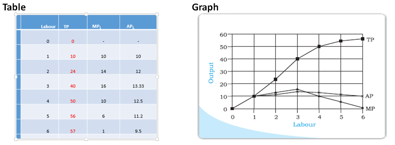 •MP first increases (upto 3 units of labour) and then begins to fall.