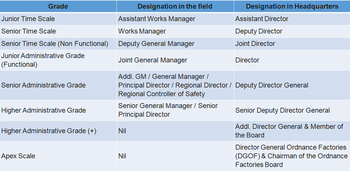 •The officers are usually attached to the Ordnance Factories and they look after the HR issues of the factories